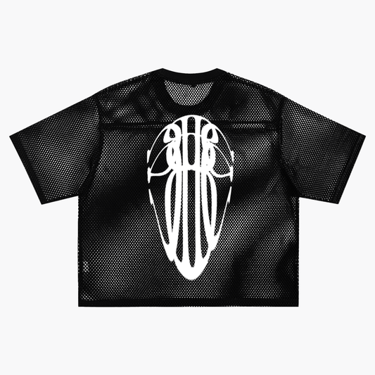 Beau Chaos Unisex "Tall & Wide Stretch" Logo See-through Boxy Net T-Shirt