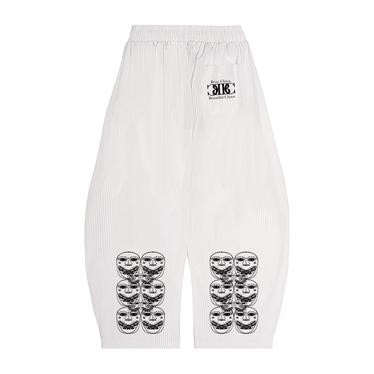 Beau Chaos Unisex "Name, Face Phase 2 & 3" Logo Vertical Stripe Drawstring Barrel Pants