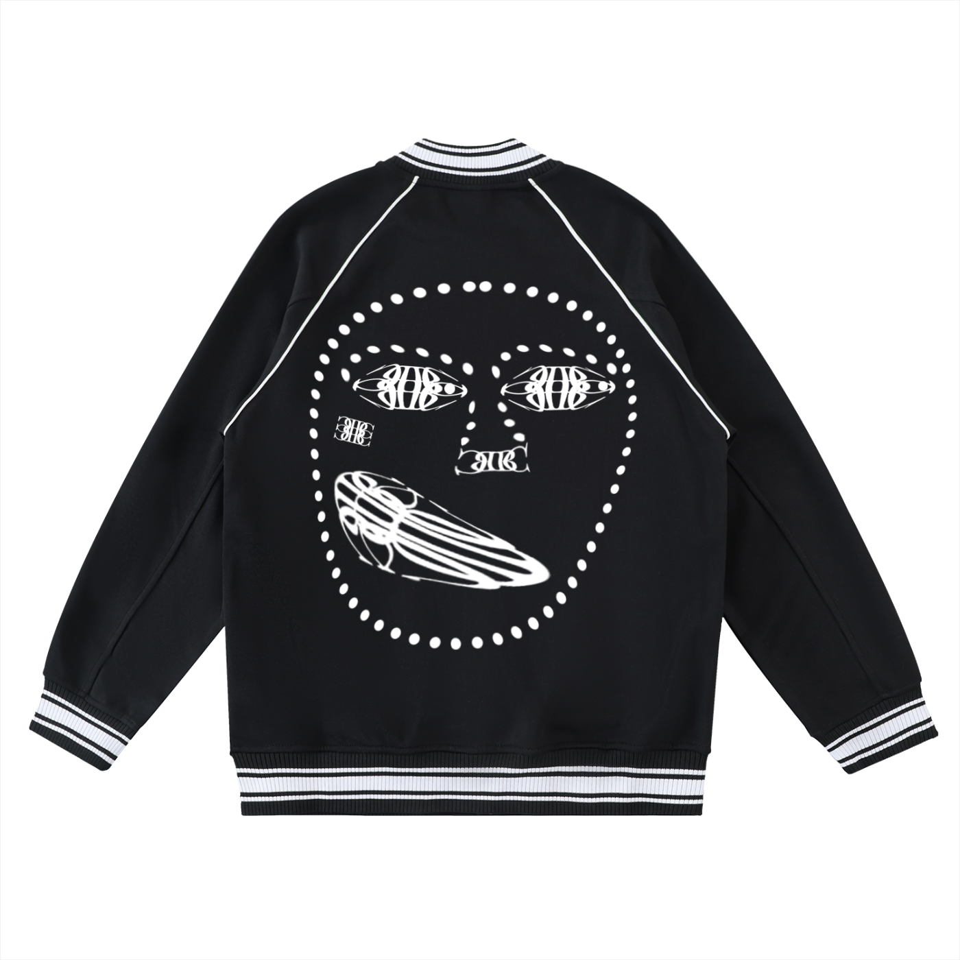 Beau Chaos Unisex "BC Mirror & Face Phase 1" Logo Contrast Trim Raglan Varsity Jacket